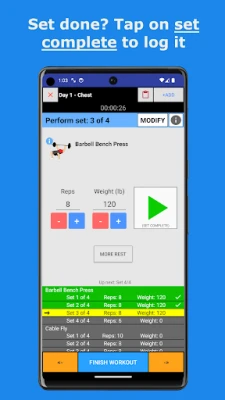 This simple and easy to use gym workout planner & tracker allows you to plan and log your workouts (including sets, reps, 1RM, weight lifted and more).