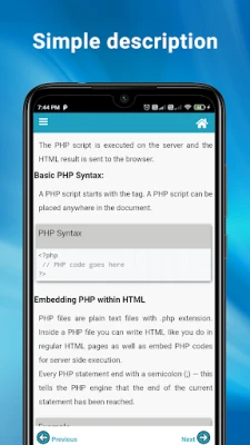This app contains all the major topics of PHP 8 with Excellent Code Examples. We constantly update this app with every new major PHP release and add more code snippets and examples. This PHP Tutorial Offline App Is Helpful To All Students And Developers To Keep Hand Book Of PHP. This PHP Offline Tutorial Help You To Learn PHP In A Greatly Improved Environment With More Lessons, Real Practice Opportunity, And Community Support, Learn Each Lesson With Real Examples. PHP Tutorial Offline App is a Complete Offline Guide Through PHP. You Can Learn Very Basic Fundamentals Of PHP To An Advanced Level Of PHP In Step By Step.